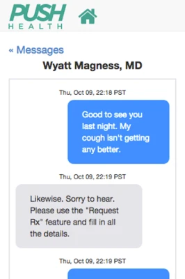 "I frequently get asked for medical advice from patients and my personal network when I am outside of the ER or the office. Push Health enables me to document electronically and send prescriptions, lab orders, messages and invoices to patients from my mobile phone and eliminates many of the hassles of being curbsided. I think Push Health is a big step in the right direction for improving access to healthcare."