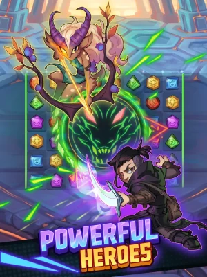 You and the enemy take turns solving match 3 puzzles on the same board. Form powerful match 3 combos to smite the enemy heroes or play defensively to deny their most powerful attacks. Make fun tactical tile matches to defeat the enemy in PvP combat.