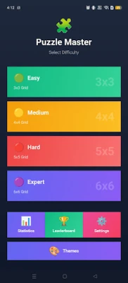 Welcome to Puzzle Master, the most beautiful and modern sliding puzzle game designed to challenge your mind! Whether you're a beginner or a seasoned puzzle expert, you'll find the perfect challenge with our multiple difficulty levels.