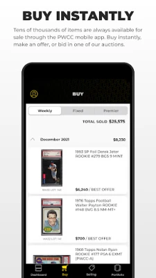 Manage your PWCC Vault portfolio from the palm of your hand. A convenient way for PWCC members to manage their trading card assets and collectibles. The PWCC mobile app creates trading card liquidity allowing users to seamlessly sell, ship, share, and analyze their trading card investment portfolio.