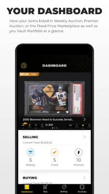 Users can easily sell their cards through our curated Weekly Auctions, our high-end Premier Auctions, or as a fixed price with the ability to accept offers on our Fixed Price Marketplace.