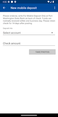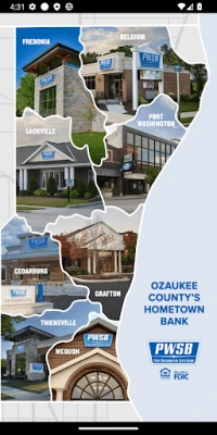 Disclosure: Port Washington State Bank is a member FDIC. This application is offered by Port Washington State Bank for personal accounts and powered by Fiserv, Inc. as the service provider. Port Washington State Bank does not charge a fee to use our Mobile Banking and Text Banking services. Message and data rates may apply. Check with your service provider for details. To view the Port Washington State Bank Privacy Policy, go to www.pwsb.bank, click Privacy Notice at the bottom of our home page.