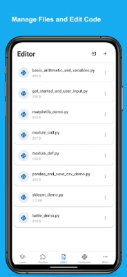 Write Python code with a professional-grade editor built for mobile. Enjoy syntax highlighting, auto-indent, linting, code folding, code completion, and an extended symbol keyboard. Everything is optimized for both beginners and experienced developers who want a fast, clean, and efficient coding workflow on the go.