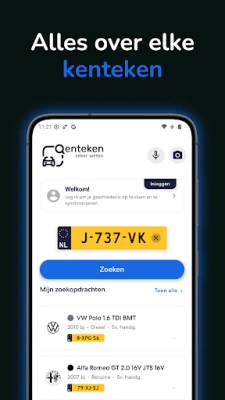Sla kentekens op als favoriet voor snelle toegang later. De geschiedenisfunctie toont alle kentekens die je hebt opgezocht zodat je makkelijk terug kunt naar voertuigen van vorige week.