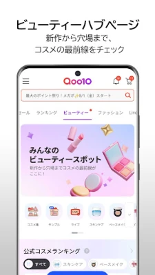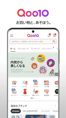 eBay公式ショッピングアプリQoo10(キューテン)。年4回の大型プロモーション「メガ割」や1日3回のタイムセールで、ファッション、ビューティー、フード、エンタメ、リビング、デジタル商品等をお得にお買い物。