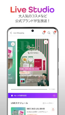 毎回Qoo10が特別に企画する、アプリ内生番組のコーナー。人気解説者のトークを交えた商品解説を、みんなと一緒にLIVE視聴・参加しましょう。