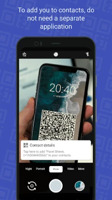 To add you to your contacts, you do not need a separate application. The camera can already recognize QR codes.