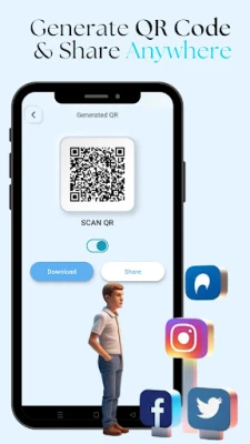 • Easy sharing – Share generated QR codes via social media, email, or messaging apps with a single tap.