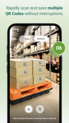 The scanner detects QR Codes and barcodes instantly as soon as they appear in the camera frame — no buttons needed.