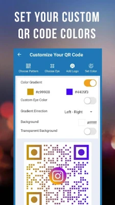 With this QR code creator app, you can generate codes whether it's for your links, Website URL, Contacts, text, Wifi, Business card, applications, social accounts, etc.
