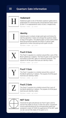- Detailed Quantum Gate Information: Access in-depth explanations and information about all the quantum gates available in the app. Enhance your understanding of how each gate manipulates quantum states and contributes to the overall circuit functionality.