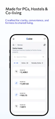 Whether you're managing a PG, hostel, rental apartment, or co-living space, Qube helps you streamline electricity management while empowering tenants with full visibility into their energy consumption.