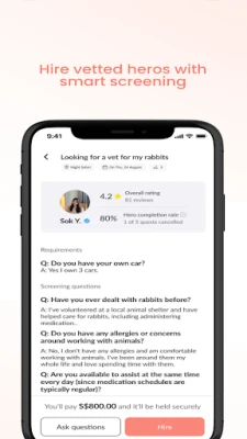 You get to review and rate your Heroes or Citizens with our simple rating system. Heroes with high ratings will confer greater credibility which increases their chances of getting hired! This ensures quality service hence a more efficient quest completion process.
