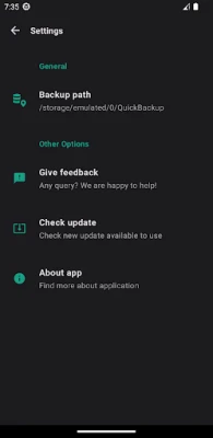 - Can change backup folder path to SD card