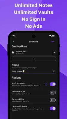 Use Routes to streamline quick capture: send notes to multiple Destinations, apply formatting, and automate actions. Customize everything anytime in Settings.