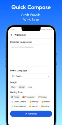 Tired of spending hours crafting the perfect email? Say goodbye to writer's block and hello to effortless communication with QuickMail, the ultimate AI-powered email writing app!