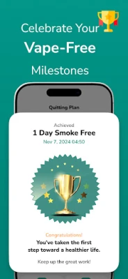 Celebrate vape-free streaks and track your daily, weekly, and monthly progress.