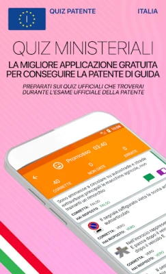 • Official ministerial quizzes (updated on 2021-2022) • Video lessons • Theory manual - theory tips during quizzes - explanation of errors • Possibility to review all the quizzes carried out • Font Easyreading that facilitates reading for users with SLD • A, B and CQC driving licenses updated according to the last ministerial instructions
