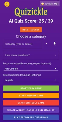 * **Play Your Way:** Use credits to generate new quizzes.