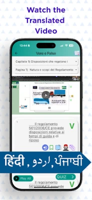 The quizzes are also translated into Punjabi,Hindi,Urdu,English,French,Spanish,Arabian language to help people who have difficulties with the italian language. For translation facility the google translation service has been included. The application can contain advertisements. Patente in punjabi