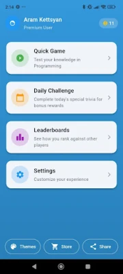 Explore a vast collection of customizable themes including Science, History, Geography, Movies, Music, Sports, Technology, Art, Literature, and many more! Switch between visually stunning themes like Classic Quiz, Space Adventure, Medieval Legends, Ocean Depths, Jungle Explorer, Tech Innovator, and Cosmic Journey - each offering a unique visual experience to match your mood and interests!