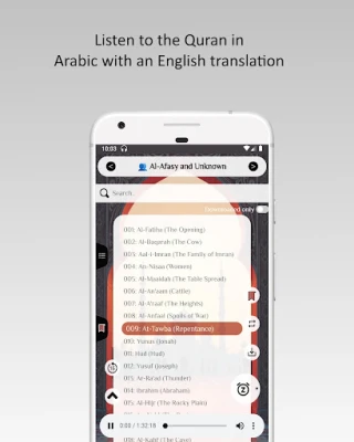 ⭐ Quran English Player automatically remembers your last listening position with every reciter so you can continue listening where you left off