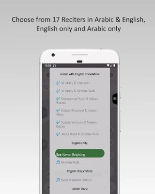 Quran English Audio Player lets you listen to the recitation of the Holy Quran with a spoken English translation, or as an English only Audiobook or in it's original Arabic only recitation.