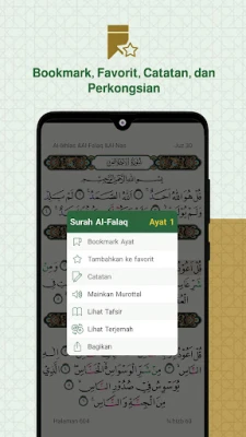 The possibility of sharing the verse as text or image, sharing interpretations and translations.