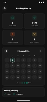 Track your Quran reading sessions, monitor your progress, and build streaks to stay consistent.
