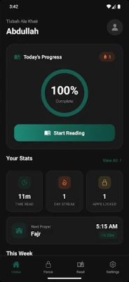 QuranUnlocker blocks distracting apps during prayer times and replaces them with a Quran reading screen. Build a consistent Quran reading