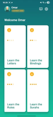 Learn the Allah’s book letters by listening to audios of Alphabet, Bindings, Rules, and Surahs.