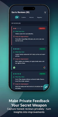 Qurio is a customer feedback app designed for small and local businesses that want better Google ratings and stronger online reputation. Collect private customer feedback using QR codes and automatically guide satisfied customers to leave Google reviews while keeping negative feedback private.