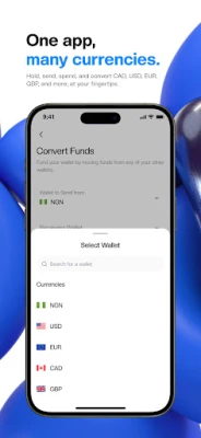 Hold and manage multiple currency wallets (NGN, USD, GBP, EUR, CAD, ZAR, XOF, XAF, and more).