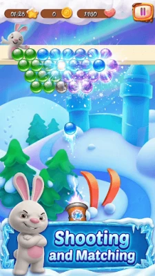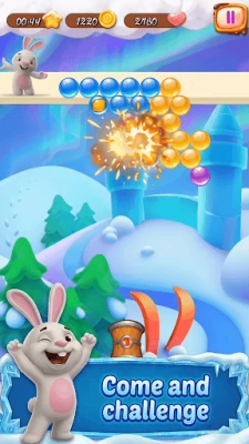 This is a bubble-shooting game featuring adorable rabbits: Aim and shoot bubbles of the same color to pop clusters and clear levels, with powerful props like black holes and explosions to help clear the board. Set in a snowy scene with interactive rabbit animations, the game has gradually increasing difficulty. It’s perfect for unwinding in your downtime or enjoying the thrill of combo pops.