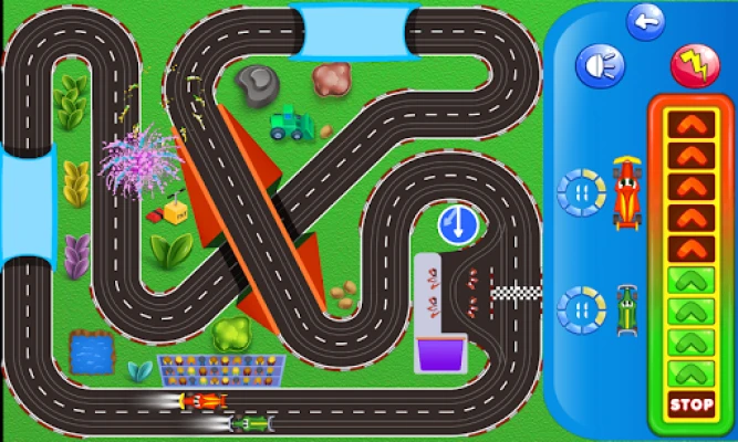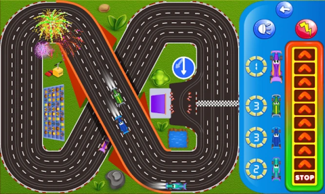They will learn how to control a slot car as it goes around a track, control speed, control fuel level, Pitstop, listen to real box notifications, Pan/Zoom around tracks. Racing Cars for Kids is a slot car simulator designed for toddlers and kids.