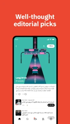 Import from Any App: We understand that migrating to a new app can be daunting. That's why we've streamlined the process of moving your library from any podcast app to Radio thmanyah.