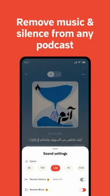 Listen Without Music: Catering to a widespread preference in our Arab region for music-free listening, We developed an AI model that separates music from any podcast episode worldwide, giving you the choice.