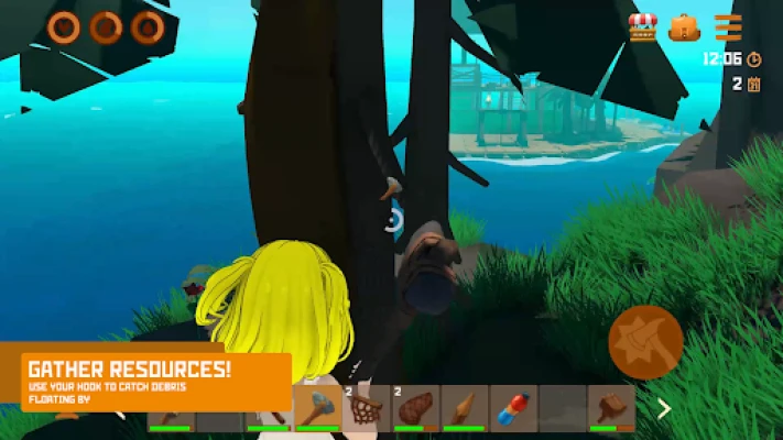It's hard to get resources in the sea: players will want to make sure to grab any floating debris with their trusty grappling hook, if it possible, scavenge the reefs beneath the waves and the islands above.