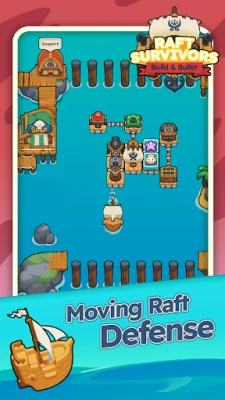Moving Raft Defense: You're not defending a static position; your defense is always moving. Players must not only build and upgrade fortifications, but also steer the raft to avoid massive enemy swarms and environmental hazards.