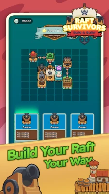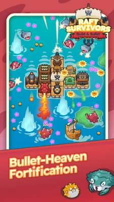 Bullet-Heaven Fortification: Build an arsenal of auto-firing turrets, cannons, and defensive modules onto your raft. Combine and evolve these modules to create overpowered, screen-filling waves of defensive fire that mow down endless hordes of sea monsters.