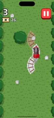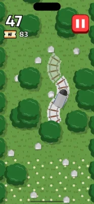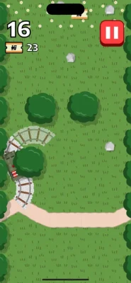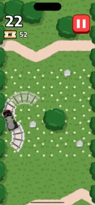 On only two pairs of curved rails, guide a train as far as you can by placing the track behind in front of the other! Quickly, swipe to choose the track direction and tap to place, or the train will run off-rail. Also avoid leading the train into rocks and trees.