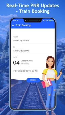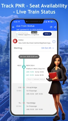 Check PNR status Real time running status of train. Get train schedule. Application saves the details so that they can be viewed later. Trains between stations Seat availability Fare inquiry for any train of Indian Railways. Search for trains leaving from stations