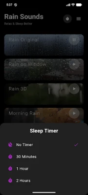 Set a sleep timer and let Rain Sounds automatically stop playing after: