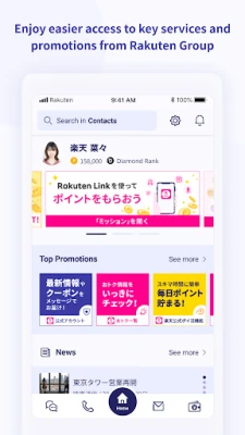 As a Rakuten Mobile user, you can now enjoy easier, one-stop access to not only your favorite services in Rakuten Link but also exclusive deals across Rakuten Group services! Call, message, Check data usage and billing, earn points by using the Rakuten Link's Super Point Screen, access key akuten Group services and do much more - all from one screen!