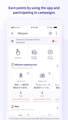 ■Missions: Earn points by using the app and participating in campaigns!