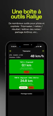Prepare your notes like a pro. - Add geotagged voice notes on each section of the route - View the steering wheel rotation angle in real time with an animated cockpit dial - Use a precision tool for your distance measurements - Keep track of the last significant turn automatically - Access the day's weather on the special stage, with integrated location - Access your live results via the FFSA link - Share and save your pace notes with Rally Call files
