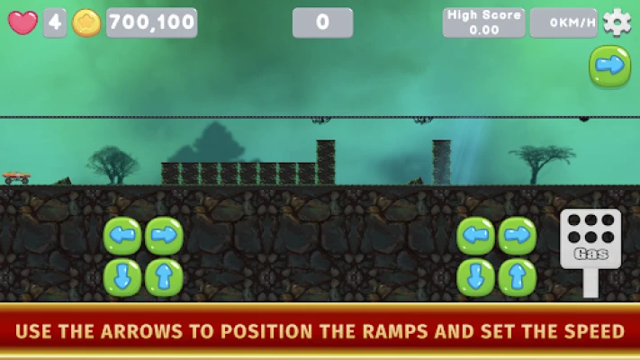 ★ Next, use the arrow buttons to set the jumps, set their desired angle, and accelerate the car by pressing the gas pedal.