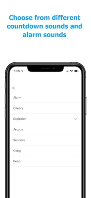 * Sounds an alarm when the timer hits 0. Choose from different alarm noise options, go silent with vibrate-only option, or upload your own sounds/songs