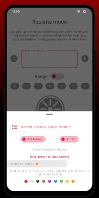 β’ The recent options used in the roulette are automatically saved and can be restored or deleted!