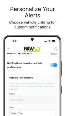 Search, bid, and buy vehicles from anywhere with the RAW2K app.